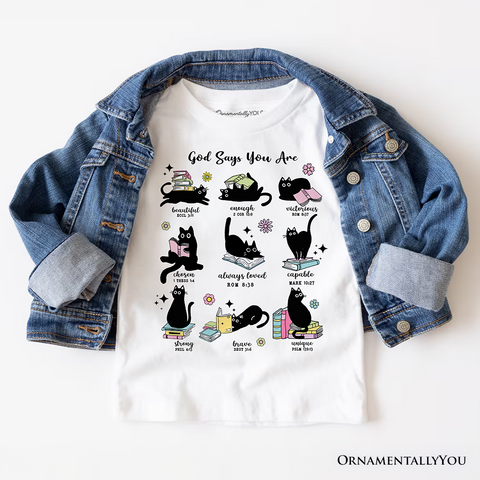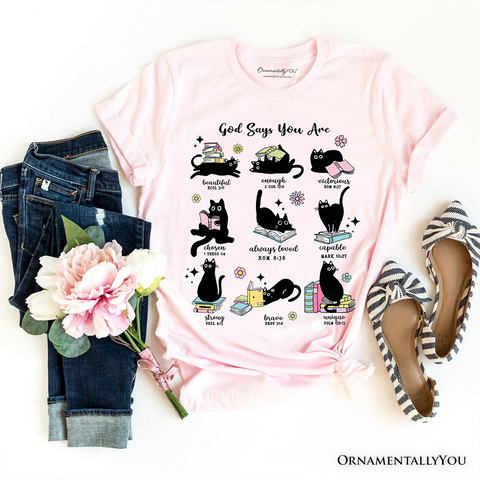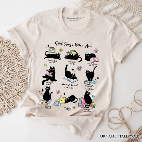 Book Cat God Says I Am T-Shirt, Christian Bible Verse Faith Tee