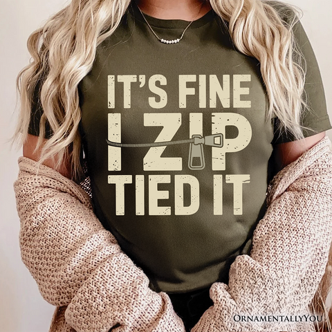 Funny Mechanic Car Guy T-Shirt, It's Fine I Zip Tied It Tee