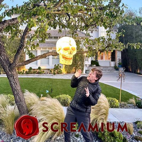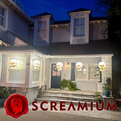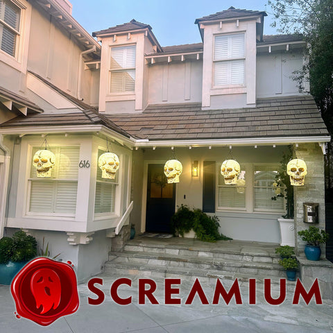 Hang the Giant Skull Lantern outdoors or indoors to create the ultimate Halloween ambiance for your home or business! This big skeleton head lamp prop from SCREAMIUM features scary details such as sunken eye sockets and big, gnarly teeth. An internal light illuminates the undead head in dark environments, inside or outside. Fully water resistant and durable, this outdoor Halloween decoration can withstand harsh wind and weather. When viewed in person, you'll experience the amazing artistry of this monster masterpiece. Formed from translucent polyresin material in a roto mold and hand-painted by highly skilled airbrush artisans, each giant skull is a work of art unto itself!