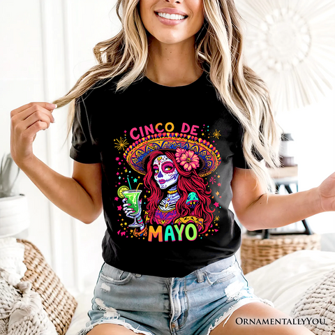 Embrace bold fiesta fashion with this sugar skull girl Cinco de Mayo t-shirt featuring a stylish design with margarita and sombrero details 💀🍹 This Mexican-inspired graphic tee combines edgy and festive elements, making it perfect for parties, celebrations, and everyday wear. Soft and comfortable, it pairs effortlessly with your favorite casual outfits. A great choice for those searching for a trendy sugar skull shirt, Cinco de Mayo outfit, or unique fiesta graphic tee ✨