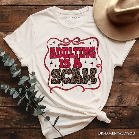 Adulting Is a Scam Humor T-Shirt, Leopard Retro Western Tee