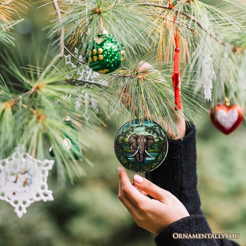 African Pachyderm Elephant Stained Glass Style Ceramic Ornament, Safari Animals Christmas Gift and Decor