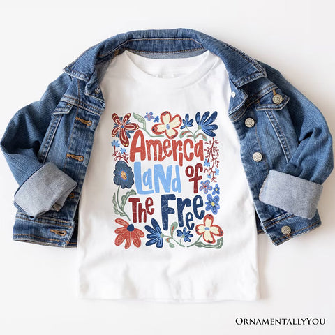 America Land of the Free T-Shirt, Retro Floral Independence Day Tee