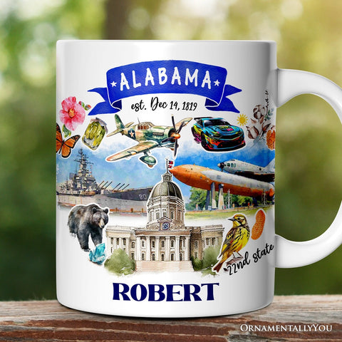 Artistic Alabama State Themes and Landmarks Personalized Mug With Custom Name