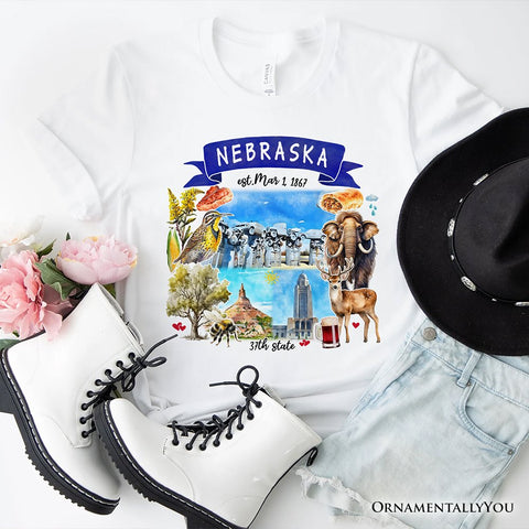 Artistic Nebraska State Themes and Landmarks T-Shirt, Tee for History and Travel Lovers