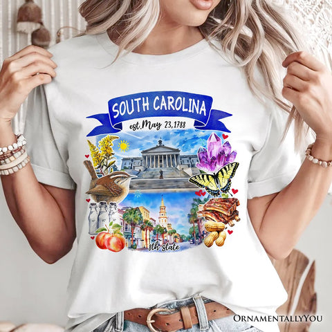Artistic South Carolina State Themes and Landmarks T-Shirt, Tee for History and Travel Lovers