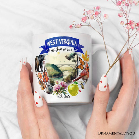 Celebrate your connection to the Mountain State with a vibrant mug featuring iconic West Virginia themes and landmarks, beautifully illustrated to capture its natural beauty and rich history. Perfect as a personalized gift or a keepsake, this mug includes the option to add a custom name, making it a thoughtful choice for friends, family, or yourself. Ideal for sipping your morning coffee or tea, it’s both practical and decorative, showcasing the charm of West Virginia’s heritage. Whether you’re reminiscing about a visit, showing state pride, or searching for a unique gift, this mug is a standout. 🌄🏞️☕