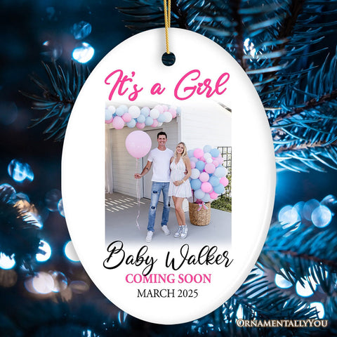 Baby Gender Reveal Personalized Photo Ornament, Itโs a Boy or Girl Announcement, Small Baby Shower Gift