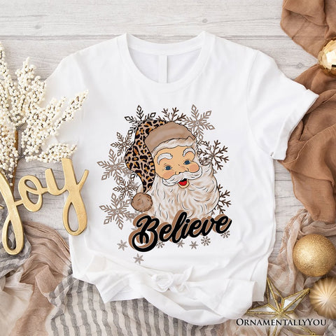 Believe Santa Cheetah Leopard T‑Shirt, Retro Christmas Tee