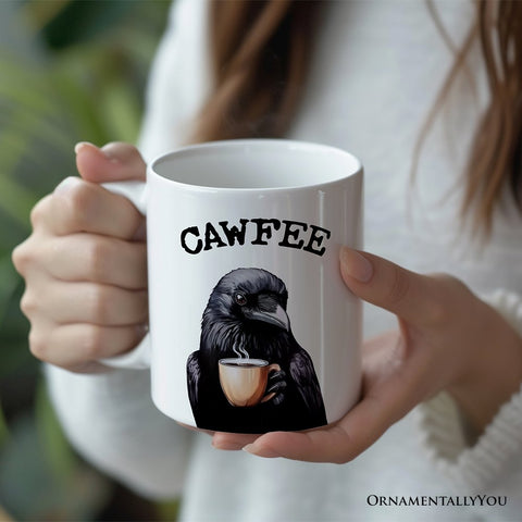Cawfee Crow Personalized Mug, Funny Bird Lover Gift With Custom Name