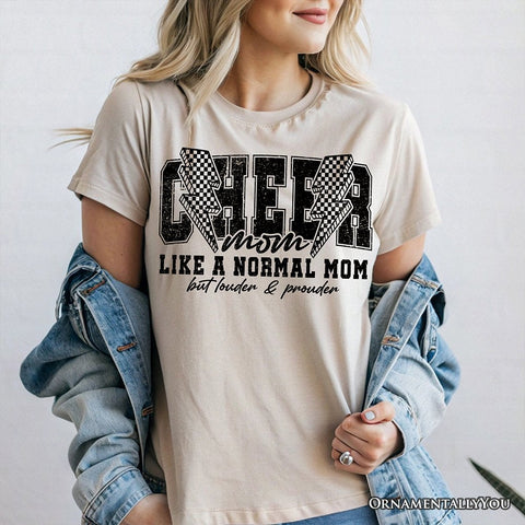 Show your team spirit in style with this retro-inspired tee designed especially for proud cheer moms! Featuring a bold lightning bolt design and vintage lettering, this comfortable and eye-catching shirt is perfect for game days, competitions, and everyday support. Whether you're cheering from the sidelines or running post-practice errands, this white and natural color combo offers a trendy yet classic look that pairs effortlessly with jeans, shorts, or joggers. Made from soft, breathable fabric, it ensures all-day comfort for active sports moms who never miss a moment. A must-have gift for any cheerleading season, pep rally, or proud parent celebration!