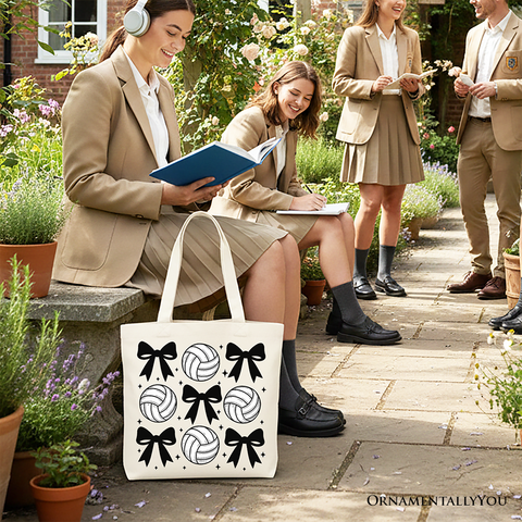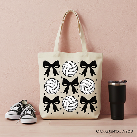 Coquette Volleyball Bows Canvas Tote Bag, Cute Athletic Sports Game Day Gift Shopper
