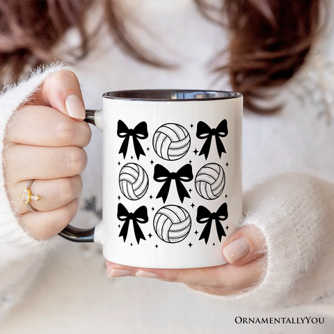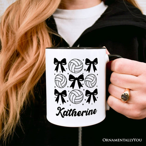 Coquette Volleyball Bows Personalized Mug, Cute Athletic Sports Game Day Gift with Custom Name