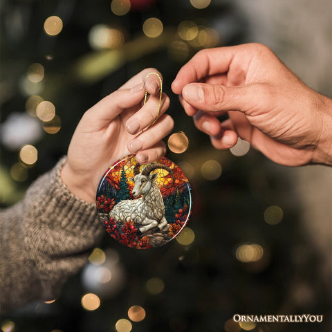 Elegant Goat Stained Glass Theme Ceramic Ornament, Billy Buck and Doe Mountain Animal Decor