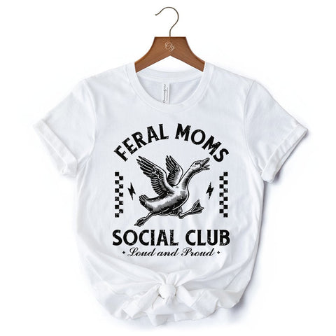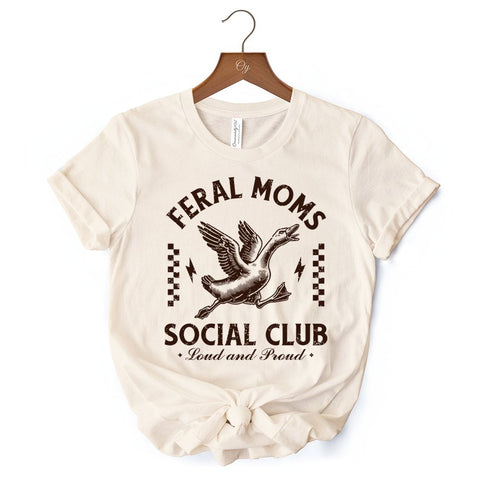 Feral Moms Social Club Goose T-Shirt, Funny White and Natural Tee for Loud and Proud Moms