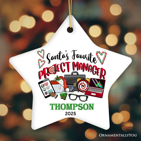 Festive Santa’s Favorite Project Manager Personalized Christmas Ornament, Business Team Coordinator and Leadership Recognition Gift