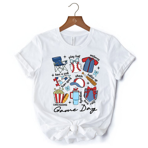 Game Day Baseball T-Shirt, Retro White and Natural Stadium Tee for Sports Fans