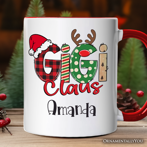 Gigi Claus Retro Christmas Personalized Mug, Matching Family Holiday Gift with Custom Name