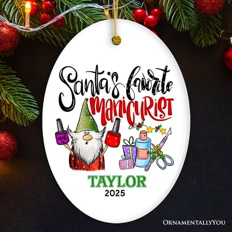 Glamorous Santa's Favorite Manicurist Nail Art Personalized Christmas Ornament, Beauty Artist Appreciation Gift
