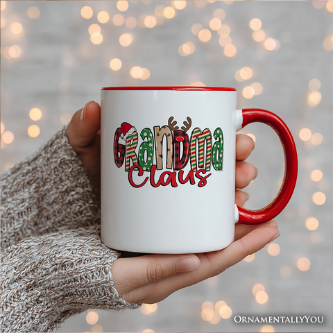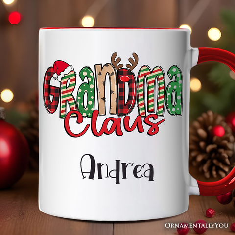 Grandma Claus Retro Christmas Personalized Mug, Matching Family Holiday Gift with Custom Name