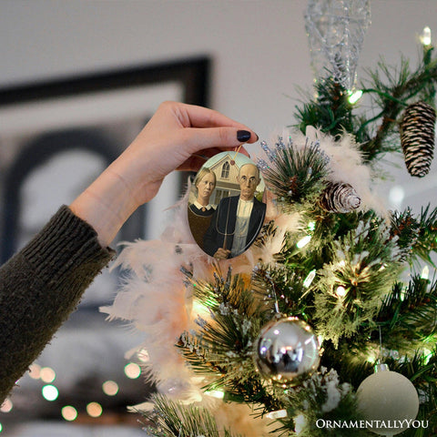 Grant Wood American Gothic Art Ceramic Ornament, Famous Painting Christmas Decoration Souvenir