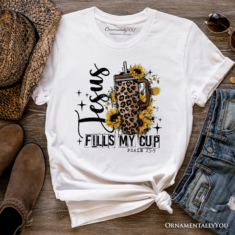 Jesus Fills My Cup Christian T-Shirt, Leopard Print Coffee Tee