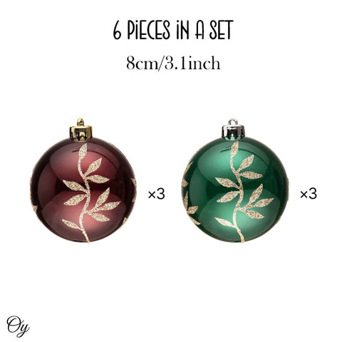 Elevate your holiday décor with the captivating allure of our Majestic Gold Glittered Floral Bauble Christmas Ornament Set! This exquisite collection features 6 dazzling pieces of maroon and green round tree balls, each adorned with intricate floral designs and a touch of shimmering gold glitter. Illuminate your festivities with the enchanting brilliance of these meticulously crafted ornaments, each capturing the essence of festive joy. Adorn your tree with these exquisite baubles that blend opulent elegance with the magic of the season, creating a harmonious symphony of festive beauty. Whether you're aiming for a regal holiday ambiance or a cozy winter wonderland, these ornaments promise to infuse your space with the spirit of celebration. Transform your surroundings into a radiant haven of holiday magic and elegance with this captivating bauble Christmas ornament set, ensuring your celebrations are filled with wonder and cheer! 🌟🎄
