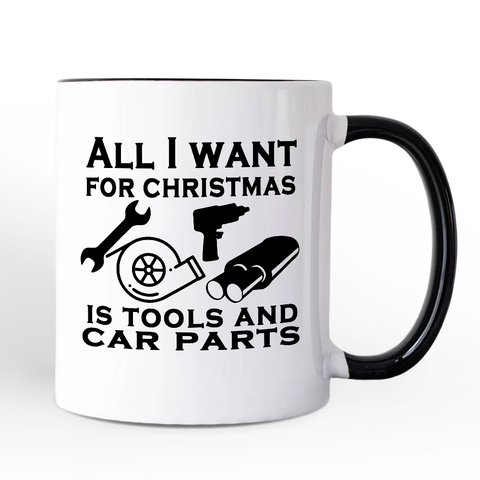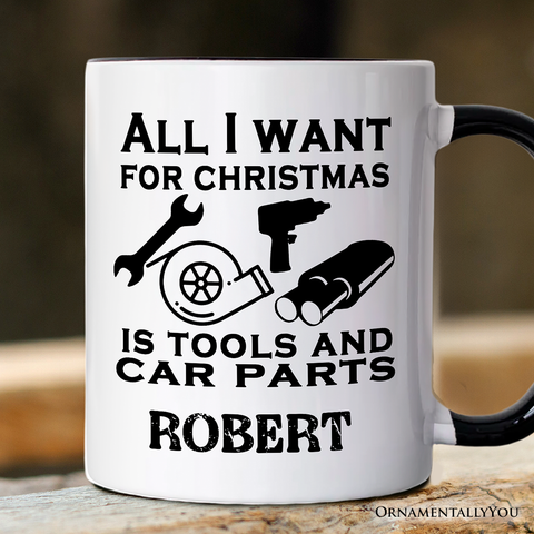 Mechanic Tools & Car Parts Christmas Personalized Mug, All I Want for Christmas Garage Quote Gift with Custom Name