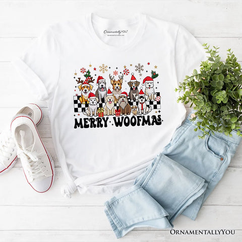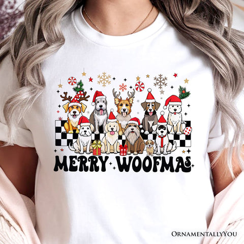 Merry Woofmas Dog Mama T‑Shirt, Dogs With Santa Hats Christmas Tee