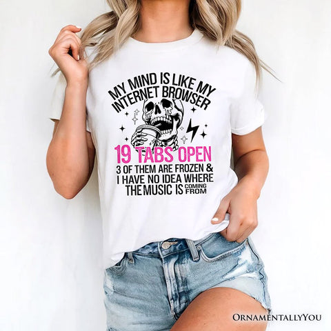My Mind is Like My Internet Browser T-Shirt, Sassy Overstimulated Skeleton Funny Tee