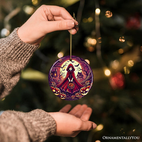 Mysterious Red Riding Hood in the Woods Ornament, Spooky Halloween Tree Decor