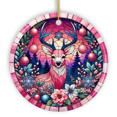 Mystical Yuletide Deer Pink Themed Ornament, Elegant Christmas Tree Decor