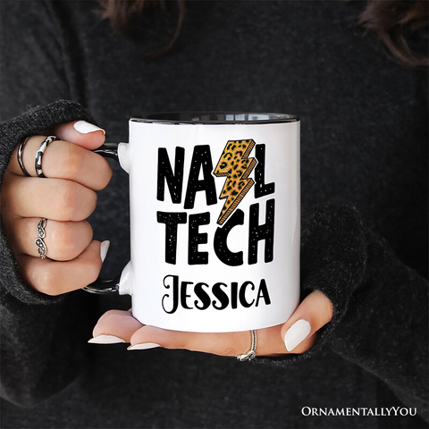 Nail Tech Leopard Lightning Personalized Mug, Retro Stylist Gift with Custom Name