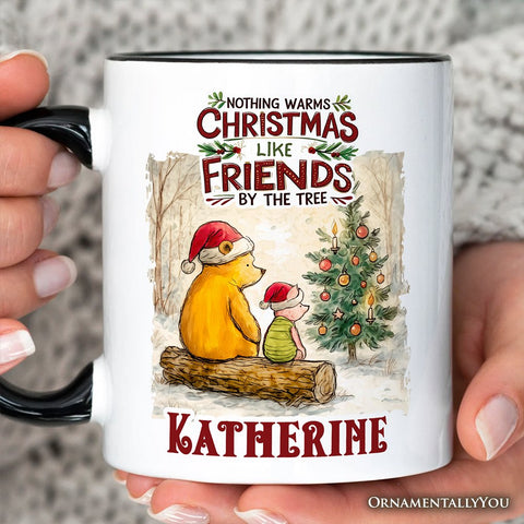 Nothing Warms Christmas Like Friends Pooh Bear Personalized Mug, Heartwarming Holiday Gift with Custom Name