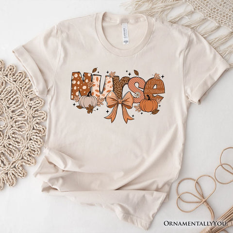 Nurse Coquette Autumn T-Shirt, Cozy Fall Pumpkins Tee for Healthcare Heroes