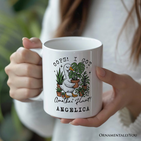 Oops I Got Another Plant Goose Personalized Mug, Sarcastic Gardening Humor Gift with Custom Name