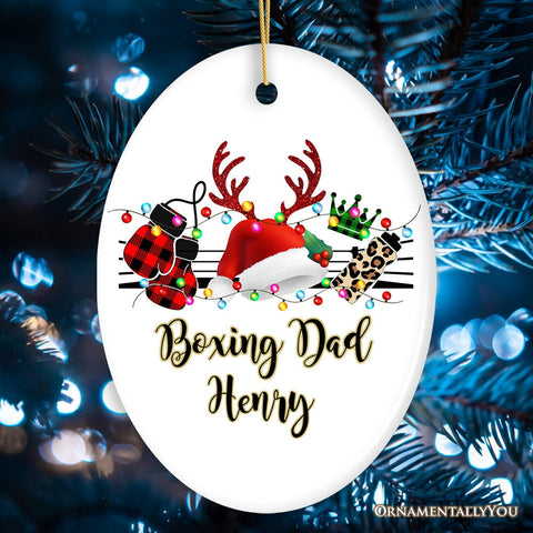 Personalized Boxing Buffalo Plaid Leopard Merry Christmas Ornament, Team and Coaches Gift