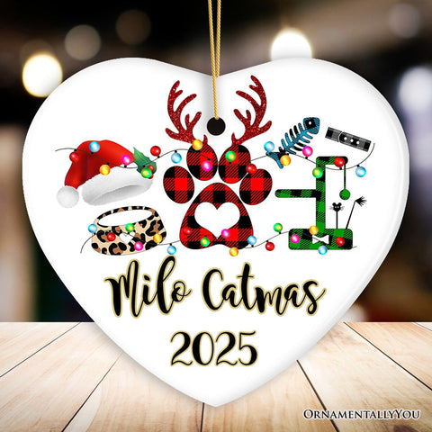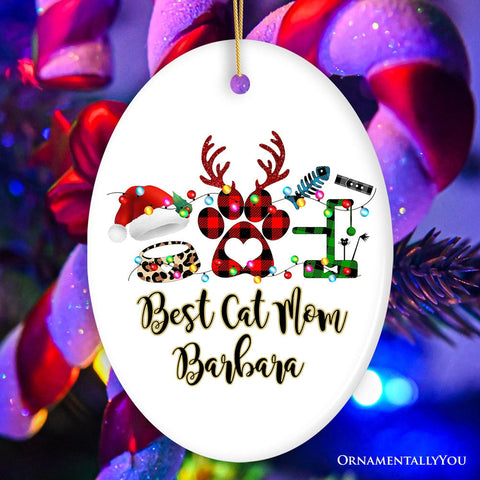 Personalized Cat Buffalo Plaid Leopard Merry Christmas Ornament, Cat Mom Gift