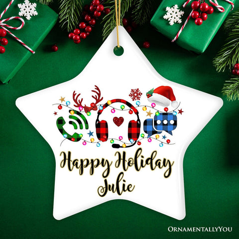 Personalized Customer Service Representative Buffalo Plaid Leopard Merry Christmas Ornament Gift