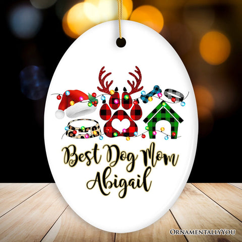 Personalized Dog Buffalo Plaid Leopard Merry Christmas Ornament, Dog Mom Gift