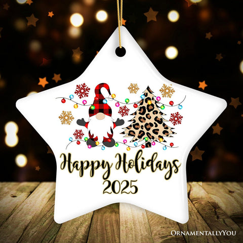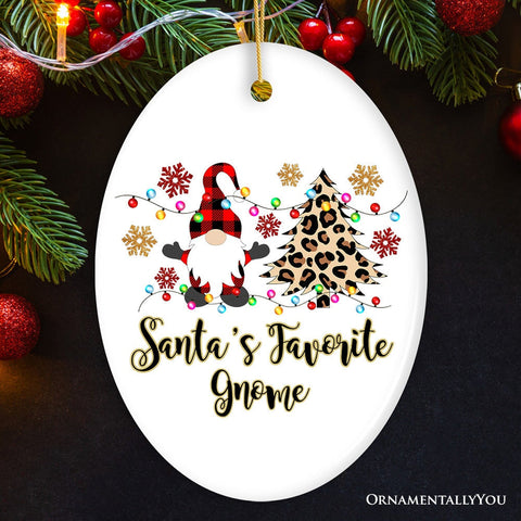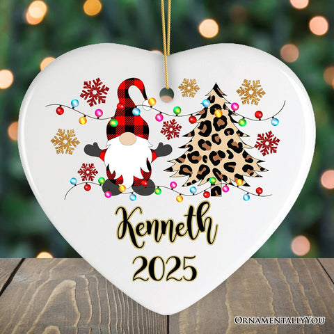 Personalized Gnome Plaid Leopard Merry Christmas Ornament Gift