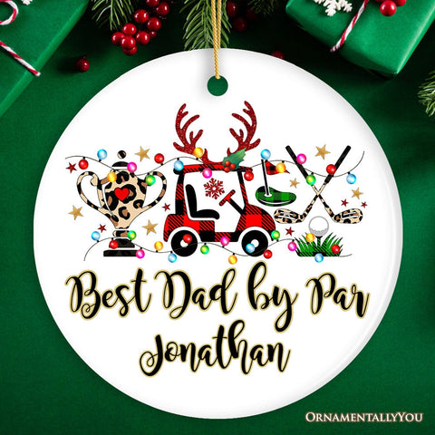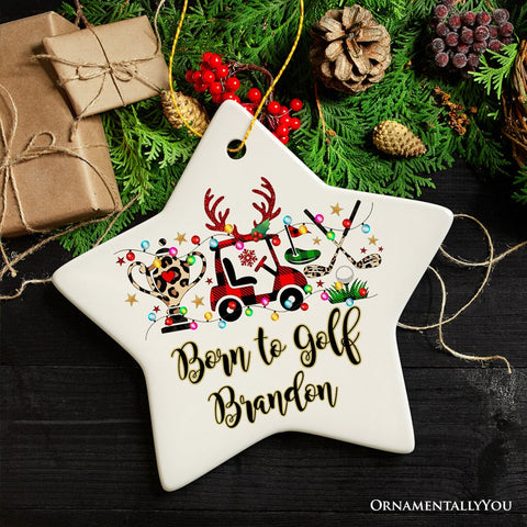 Personalized Golf Buffalo Plaid Leopard Christmas Ornament, Golf Cart, Putter and Trophy Golfing Gift
