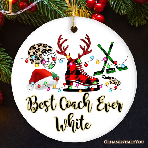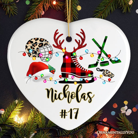 Personalized Hockey Buffalo Plaid Leopard Merry Christmas Ornament, Team and Coaches Gift