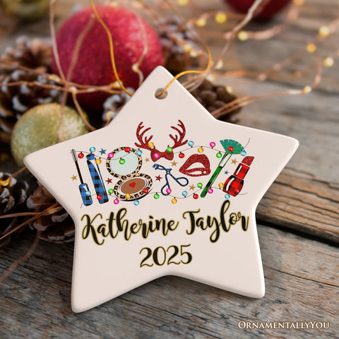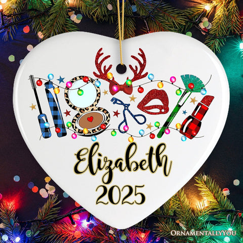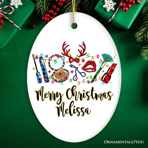 Personalized Makeup Artist Buffalo Plaid Christmas Ornament, Cosmetologist Beauty and Cosmetics Gift