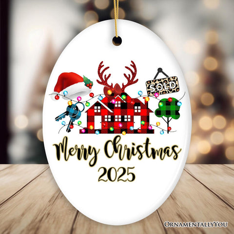 Personalized Realtor Buffalo Plaid Leopard Merry Christmas Ornament, Gift From Customers