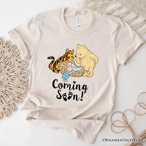Pregnancy Announcement With Pooh & Tiger T-Shirt, Coming Soon Tee for Expecting Moms
