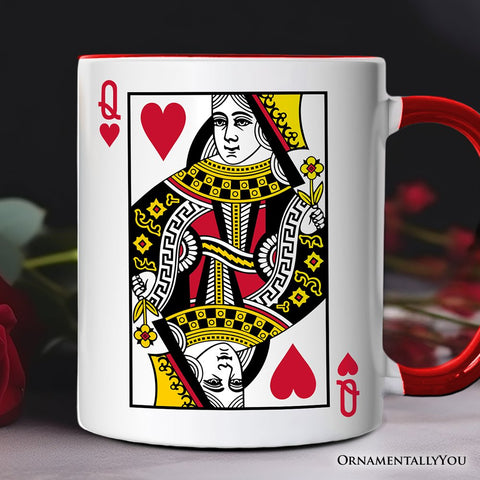 Queen of Hearts Card Personalized Mug, Classic Retro Love Valentine Gift with Custom Name