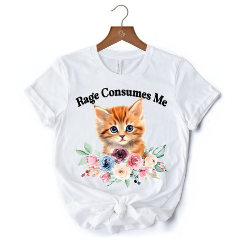 Rage Consumes Me Kitten T-Shirt, Floral White and Natural Tee for Sarcastic Cat Lovers