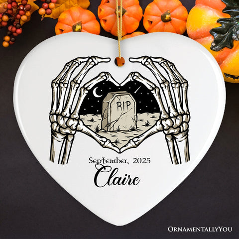 Rest In Peace Skeleton Keepsake Personalized Ornament, Halloween Themed Memorial Gift