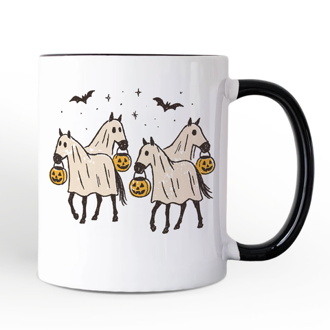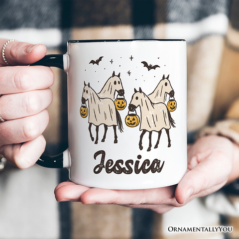 Retro Halloween Horse Ghosts Personalized Mug, Cute Western Gift with Spooky Vibes and Custom Name